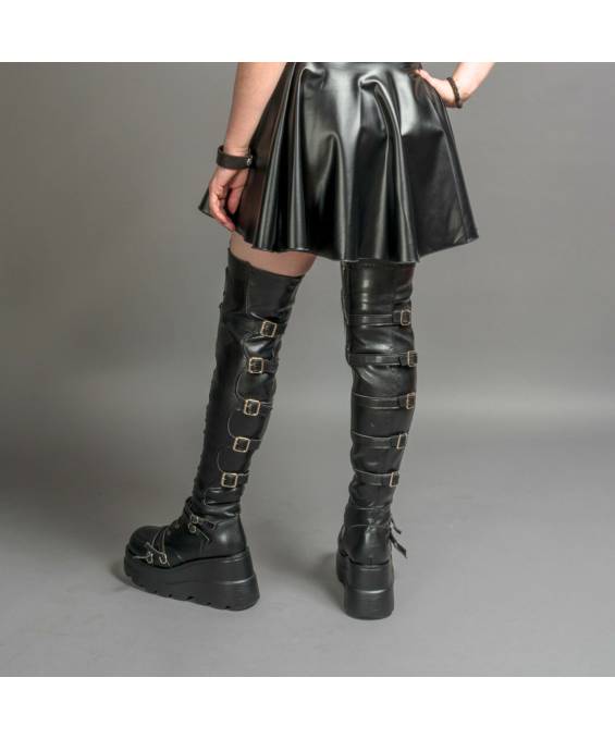 Deslízate con estas botas góticas para conseguir un look atrevido y cautivador. Con un tacón de 9 cm y una altura de 58 cm (incluido el tacón), estas botas te darán altura y presencia.