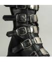 Les Drako Similicuir sont des bottines conçues pour un style gothique et alternatif. Dotées d’une plateforme de 4 cm et d’un talon de 8 cm en caoutchouc, elles offrent une hauteur et une présence marquante. Elles se distinguent par leurs 8 sangles à boucle et leurs plaques métalliques, renforçant une esthétique industrielle et brute.